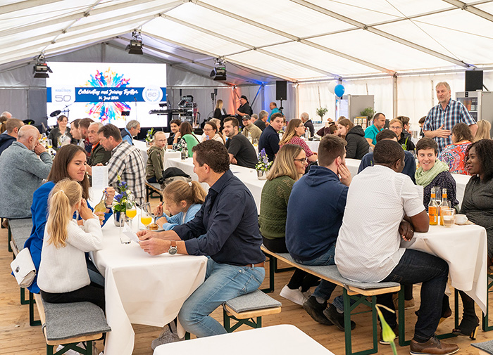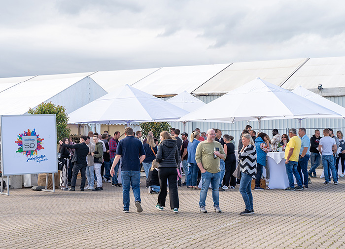 Zu den Gästen zählten auch Vertreter der DA Group wie KSL aus Bensheim, Pfaff aus Kaiserslautern und Dürkopp Adler aus Bielefeld. Unter dem Motto "Celebrating and Joining Together" begann das Fest am Nachmittag mit einem Firmenrundgang, bei dem das Portfolio der DA Group präsentiert wurde. Ein Sektempfang mit Grußworten des Geschäftsführers Dr. Frank Meyer läutete den festlichen Abend ein. Während die Band "Pink Panthers" die Gäste mit Rock- und Pop-Coversongs unterhielt, sorgte ein live Barbecue für das leibliche Wohl. Den Abschluss bildete die Übertragung des EM-Eröffnungsspiels der deutschen Fußballnationalmannschaft auf einer beeindruckenden LED-Wand im festlich geschmückten Zelt.