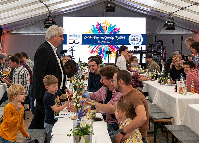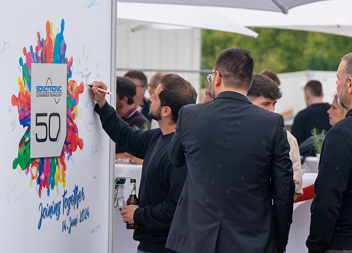 Ein halbes Jahrhundert SONOTRONIC GmbH! Im Juni 2024 feierte das Unternehmen sein 50-jähriges Jubiläum als führender Anbieter von Ultraschall-Sondermaschinen und Tochterunternehmen der DA Group. Gleichzeitig stand auch das 60-jährige Bestehen des Schwesterunternehmens KSL im Rampenlicht. Die Feierlichkeiten lockten rund 350 Besucher, darunter Mitarbeiter und ihre Familien, zum Hauptsitz nach Karlsbad-Ittersbach.