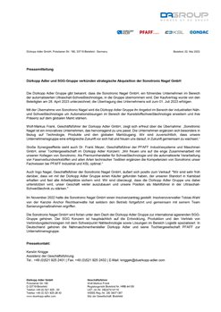 Dürkopp Adler und SGG-Gruppe verkünden strategische Akquisition der Sonotronic GmbH, 02.05.2023 (186 KB)